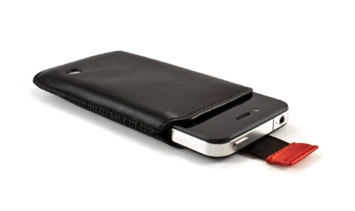 The Aluminium Lined Leather Pouch for the iPhone 4 is handcrafted from the finest quality leather, and is custom-made to the exact specifications of the device. Finished with a stylish pinstripe lining, this case is as good looking as it is tough and will fit your iPhone like a glove. A handy pull out tab makes removing your device as easy as can be.