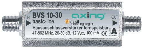 Digital-compatible inline-amplifier with 30 dB amplification in die-cast casing, can be remote-fed via input and output.