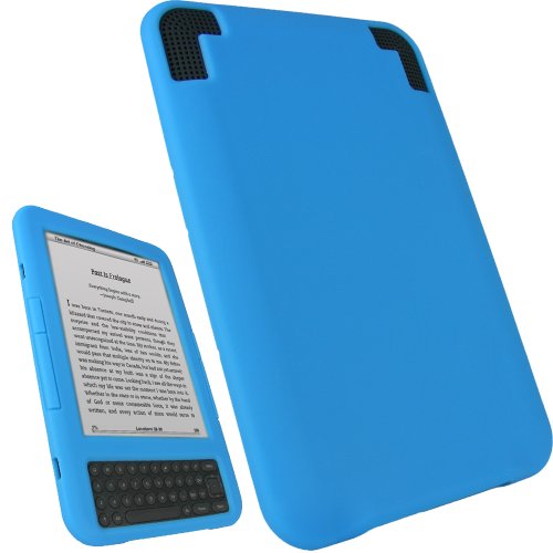 iGadgitz Blue Silicone Skin Case Cover for Amazon Kindle 3 Keyboard Graphite 3G + WiFi Global Wireless (3rd generation, released Aug 2010) + Screen Protector