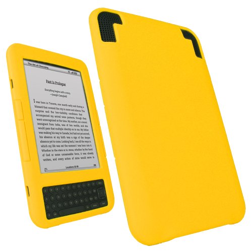 iGadgitz Yellow Silicone Skin Case Cover for Amazon Kindle 3 Keyboard Graphite 3G + WiFi Global Wireless (3rd Generation, released Aug 2010) + Screen Protector