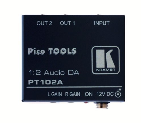* PT-102A Audio Distribution Amplifier * The PT102A is a high performance 1:2 distribution amplifier for audio stereo signals. It accepts a single input and distributes it to two identical outputs using 3.5mm mini jacks. Seperate left and right gain controls allow the user to optimize signal levels